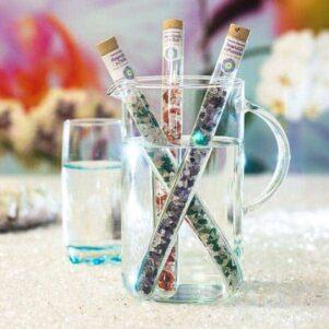 Eine einfache, sichere Möglichkeit Ihr eigenes Edelsteinwasser herzustellen. Stellen Sie den Edelsteinstab in eine geeignete, mit Wasser gefüllte Karaffe und genießen Sie nach 5-10 Minuten Ihr Edelsteinwasser.